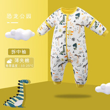 梵酷FKU 婴儿保暖睡衣宝宝防踢被秋冬季加厚1-5岁纯棉儿童睡袋 恐龙公园 S
