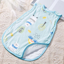 婴儿睡袋春夏季薄款蘑菇纱布纯棉新生儿童分腿防踢被宝宝空调被 6/4背心纱布北极熊 M码【适合身高85-95CM】