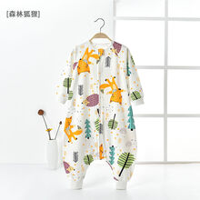 纯棉睡袋婴儿春秋夏季薄款分腿宝宝睡袋儿童防踢被夏天四季通用款 纯棉单层狐狸森林 L码(建议身高90-100cm)