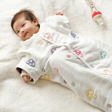 日本Hoppetta婴儿蘑菇睡袋可拆袖纱布分腿睡袋春秋冬季宝宝防踢被