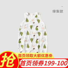 威尔贝鲁WELLBER睡袋夏季薄款婴儿纯棉分腿新生宝宝春夏纱布睡袋防踢被子 绿梨款 100(建议身高110-120)
