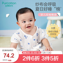 全棉时代婴儿短袖睡袋宝宝防踢被四季通用薄款新生儿纯棉纱布睡袋 可爱蓝莓 54cm×35cm