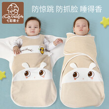 七彩博士 婴儿睡袋0-6个月防惊跳安抚睡袋新生儿睡袋春夏四季襁褓包被 小蜜蜂咖色薄款