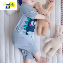 雾绡品牌儿童连体衣夏季新款男童睡衣莫代尔连体面膜夏天薄款恐龙棉绸睡袋婴儿宝宝儿童服G11 浅蓝色七分款 73码