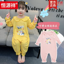国货之光恒源祥 儿童连体睡衣春秋季薄款女童长袖防踢睡袋1岁宝宝3女孩空调家居服 黄色 80