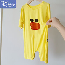 迪士尼品牌旗舰新款宝宝睡衣莫代尔短袖七分夏季薄款连体防踢被婴儿男童女童儿童睡袋 黄色卡通头(七分款) 73码