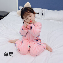 宝宝睡衣春秋珊瑚绒儿童连体法兰绒冬季家居服加绒加厚婴儿睡袋女 粉色-草莓爬服【单层】 110cm(110cm(建议身高100-110cm