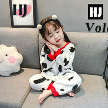 小孩子穿的连体睡衣卡通动漫棉袄睡袋宝宝连体睡衣秋冬季加绒加厚法兰绒爬服小女童珊瑚绒睡袋小学生 奶牛-单层绒>大小孩子抗寒萌时髦男童小...