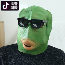 古仕龙绿鱼人沙雕头套玩具网红乳胶面具整蛊舍友搞怪表情抖音搞笑动物鱼头人套化妆舞会搞笑表演道具 绿鱼人头套+眼镜