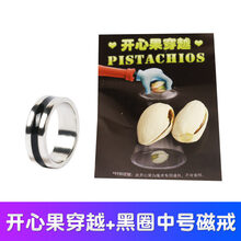 魔术戒指 开心果穿越 开心果吸铁石穿杯子 磁铁磁戒指 近景魔术道具 工具 开心果穿越(果仁版)+黑圈磁戒中号 一个