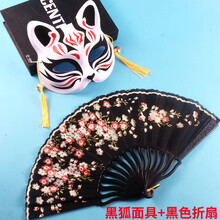 彩绘狐狸面具日式男女半脸狐古风狐狸手绘彩绘动漫猫脸cosplay舞会道具抖音同款神器玩具 黑狐面具+古风折扇【黑色】