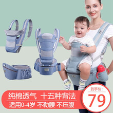 COOKSS婴儿背带腰凳前抱式多功能纯棉四季通用款抱娃神器新生儿横抱宝宝坐凳 清爽蓝