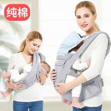 天才一叮多功能婴儿背带腰凳四季通用前抱式横抱式新生儿抱带纯棉前后两用背小孩背袋透气夏季 浅灰色【口水巾+防风帽】1053