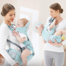 ipoosi葆氏婴儿背带腰凳宝妈背娃带孩子抱娃神器儿童背带横抱式宝宝多功能前抱式抱抱托坐凳夏季透气 绿色(四季通用款)