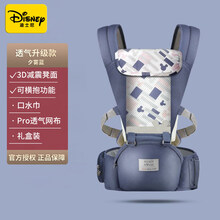 迪士尼腰凳婴儿背带夏季透气四季多功能款前抱式前后两用抱娃神器可做单凳 夕雾蓝