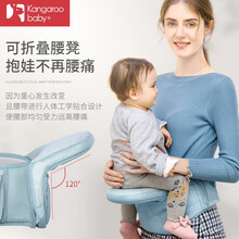 袋鼠仔仔腰凳婴儿背带多功能轻便宝宝夏季四季单凳前抱式腰登坐凳小孩抱娃神器透气护腰款1 【四季款】蓝色+可调节角度+收纳袋