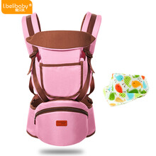 【一款八用】爱贝礼婴儿背带腰凳抱宝宝儿童腰带多功能四季通用透气 粉红(四季款)