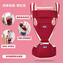 多功能婴儿背带腰凳抱凳 宝宝背婴带抱袋 小孩背袋坐凳 儿童腰登抱带 双肩背带夏 四季通用款-烈焰红
