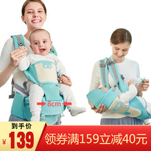 多功能婴儿背带腰凳横抱式抱娃器抱抱托背婴带抱带初生宝宝抱袋新生儿童前抱式背巾坐凳 浅绿色四季款(纯棉)