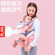 涵语贝婴儿背带腰凳 背婴带儿童背娃抱娃神器宝宝透气坐凳 夏季透气多功能四季通用前抱式后背式前后两用 粉色