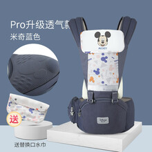 迪士尼婴儿背带腰凳新生儿宝宝夏季腰凳轻便四季背带多功能前抱前后两用抱娃神器 【全新升级礼盒装透气款】洛克蓝3D硅胶凳面