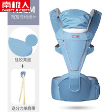 南极人婴儿背带前抱式夏季透气网多功能夏天小孩儿童轻便宝宝腰凳 棉四季-浅蓝色【7.5cm裆宽+普通凳芯】