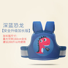 电动摩托车儿童安全带宝宝安全带骑电瓶车小孩后坐绑带防摔保护带 腰围加长型--深蓝恐龙【安全升级版】