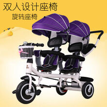 双胞胎儿童三轮车小孩脚踏车双人婴儿手推车二胎宝宝轻便可坐童车 白紫轮