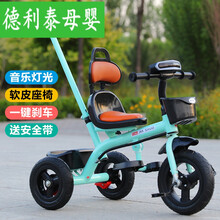 遛娃神器 儿童三轮车脚踏车1-3-2-6岁大号轻便宝宝婴儿手推车自行车童车 湖蓝色钛空轮推把安全带双刹车 音乐灯光软座靠背