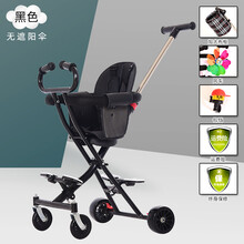 新品双向遛娃溜娃神器手推车儿童大脚踏折叠宝宝轻便婴儿四轮带娃 黑色双向大脚踏 五点式坐垫+礼品