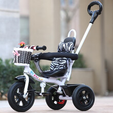 迪士尼新品宝宝三轮脚踏车户外溜溜车儿童玩具遮阳带伞车带娃娃踏板车手推车 深棕色