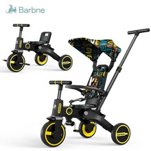 巴巴泥儿童三轮车溜娃神器1-3-6岁手推车遛娃可折叠脚踏车宝宝轻便小孩脚蹬多功能 SL-168蒙特黄