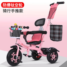 迪士尼新品多功能儿童三轮车大号轻便手推车1-3-6岁童车小孩单车宝宝脚踏车 粉色钛空轮+布兜