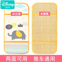 迪士尼(Disney)婴儿车凉席垫通用夏季宝宝推车冰丝竹席透气双面儿童凉垫藤席垫子 冰丝面+冰藤面(两面可用)米小象 75cmX33cm