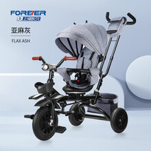 永久(FOREVER)儿童三轮车折叠可躺推脚踏车多功能童车1-3-5岁手幼儿宝宝小孩婴儿手推三轮车 亚麻灰黑车架钛空轮+折叠可躺+旋转座椅