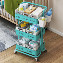 心家宜 厨房置物架 落地多层小推车储物架 婴儿用品卧室办公室杂物架零食架化妆品架玩具架收纳架架子 拉网三层(带把手)(清新绿)