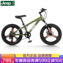 吉普(JEEP)儿童自行车小孩碟刹变速山地车单车男女童车6-10岁-12岁小学生男女款 星芒款-7速一体轮-吉普绿 20寸(适合身高1.25m-1.5m)