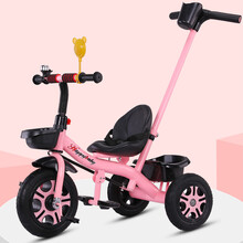 儿童三轮车脚踏车1-3-2-6周岁简易轻便小孩手推车大号宝宝单车自行车 粉色防爆钛空轮+手推杆+安全带【免充气】