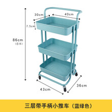 优辉 婴儿置物架推车移动分层宝宝床边储物架卧室整理架客厅落地收纳架 蓝绿色三层带手柄(带3个挂桶 4个挂钩)