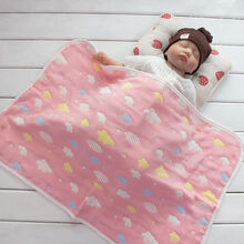 【Evich】外出推车毯子纯棉纱布婴儿午睡宝宝盖肚子小迷你被新生儿夏秋季 三层粉彩云 50*80
