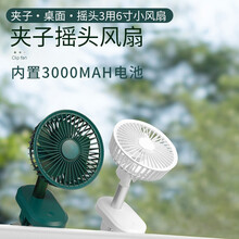 茗越迅 迷你小风扇充电自动摇头静音大风力usb夹子风扇宿舍台式办公桌宝宝婴儿推车便携小电风扇 白色【3000mah一键摇头可夹式】可充电版