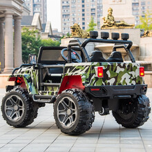 儿童电动车四轮四驱宝宝玩具汽车可坐双人带遥控摇摇蓝牙男女小孩越野双座儿童车 迷彩色四驱+蓝牙+发泡发光软轮+探照灯+皮座