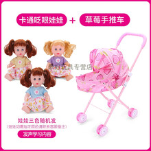 儿童铁杆发声光仿真小推车玩具娃娃手推车婴儿学步过家家女孩玩具 草莓车+发声娃娃