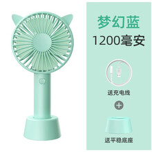 手持小风扇便携式小型随身usb可充电学生宿舍女桌面办公室桌上婴儿推车儿童手拿握口袋迷你大风力电扇 梦幻蓝【1200mA】
