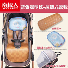南极人旗舰官网新款婴儿车凉席垫夏季推车通用透气坐垫宝宝手推车冰丝藤席bb童车席子 古藤凉席+定型枕(蓝)+拉链式蚊帐 其它