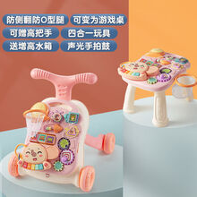 儿童学步车宝宝多功能防侧翻防o型腿手推车婴儿三合一助步车玩具7 粉【可变多功能游戏桌款】-充电版