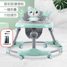 学步车防o型腿婴儿多功能防侧翻手推车宝宝可坐可推学行车起步车 菲尼绿 玩具猫 静音轮【升级版】