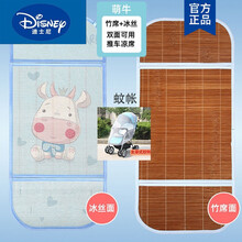 迪士尼婴儿推车冰丝凉席双面透气儿童垫子宝宝冰丝竹席新生夏季通用小车 双面竹席+冰丝[萌小牛]+蚊帐 75cmX33cm