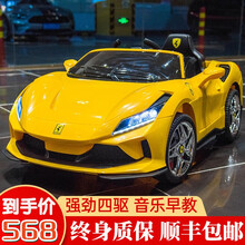 颜桔儿童电动车四轮汽车带遥控玩具车摇摆可坐人男女小孩宝宝电瓶童车 顶配版:黄色+全功能+四驱+皮座+12V7大电瓶
