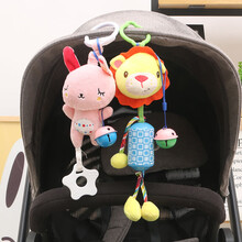 婴儿车挂件 0-1岁婴儿用品推车挂件床头摇铃音乐宝宝安抚男女孩毛绒B发声玩具 大头狮+粉兔(BB器+风铃款)